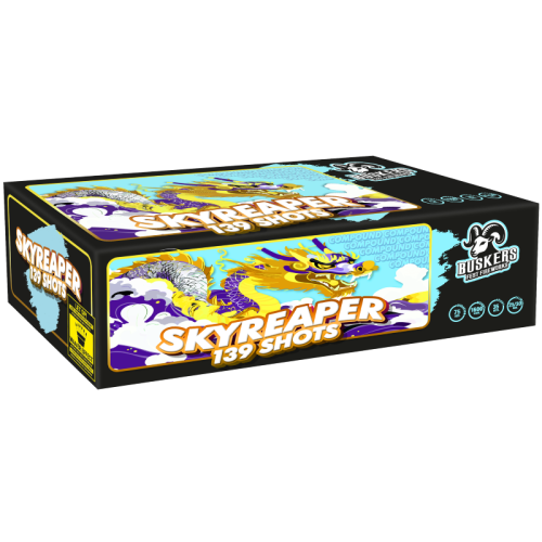 De Skyreaper domineert de nacht met 139 schoten. Gigantische, brede waaiers in een complete vuurwerkshow van meer dan een minuut!